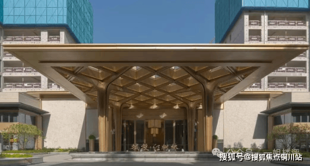 可以看到,项目的大门融合了红杉树形态设计,与两侧沿街底商相结合,配以喷泉造景和高挑尺度,气场丝毫不输“豪门”。
