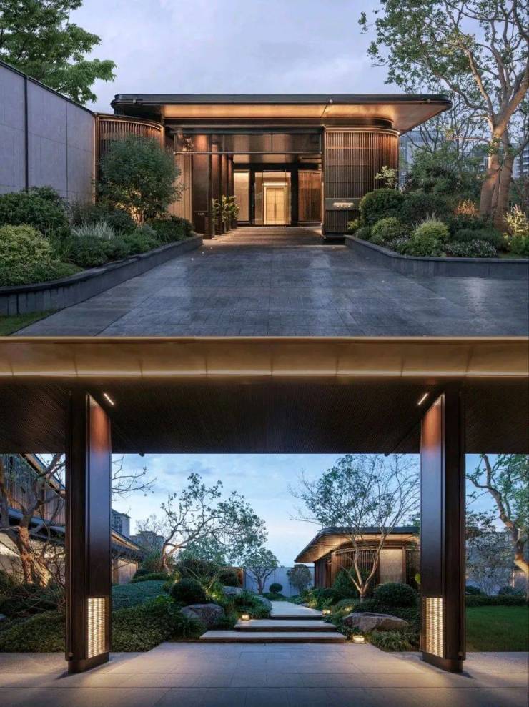 朗云运用人文哲学和自然材料来营造栖居住所,从而在自然的秩序中建立了一套新逻辑、新空间。以往的示范区与住区是独立而割裂的,朗云在苏州打破了这样的规则,将两栋住区建筑安置在示范区的一侧,形成新的对望状态。