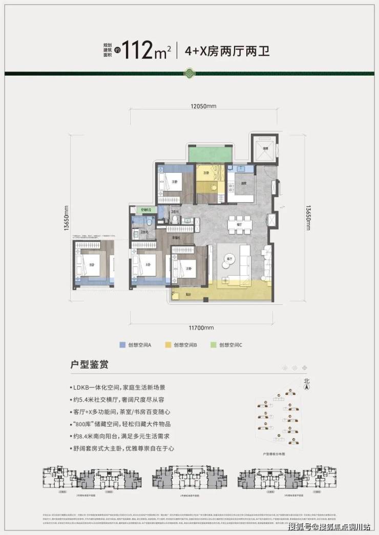 这是约112㎡的4+X房户型