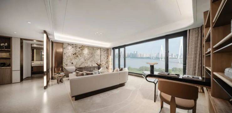 多数开发商奉行的标准化精装,本质是用“堆料”模糊细节,而启元引入服务商务楼宇的江水源系统,不仅实现四季恒温、节能降费,更以“无外机”设计提升得房率。