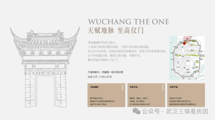 1800多年以来,古城城北的唯一城门武胜门,以“仪门”承载着由家至国的文化传承,宣扬文化主权。门内是武昌未曾移位的城池都心,是学子朝拜的贡院文庙,也是文臣武将必行之礼制。元萃则立于武昌「仪门」所在地,如此天赋厚载,武昌无二。