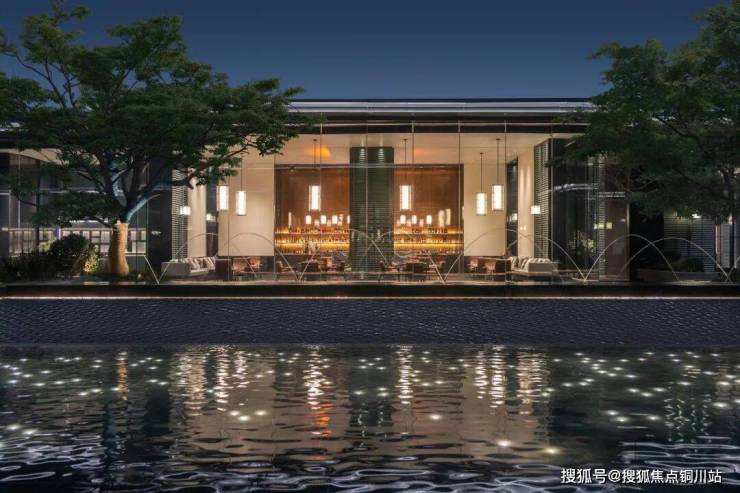 面宽达74米的恢宏大门,选用弧面切割的星耀灰奢石,营造仪式感的“归家场景”;游廊式的中心水院,以安达仕酒店为灵感的“高定级”泛会所,未来在家楼下也能私享“度假场景”……