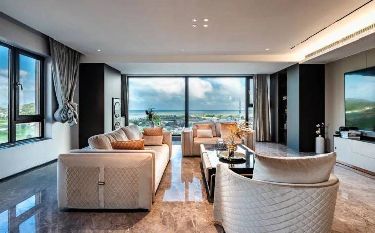 项目坐落于崂山前海,背靠午山、烟台山、棉花山,林木繁茂,鲜氧充沛,生态宜居。三面环山,两面瞰海,南面距海约433米,直面海天一色;社区内五大独立主题会所,尽享缤纷休闲时光。建面约165-202㎡山海环幕大平层,约16.7米巨幕面宽,270°观景视野,封藏山海大境。