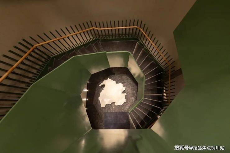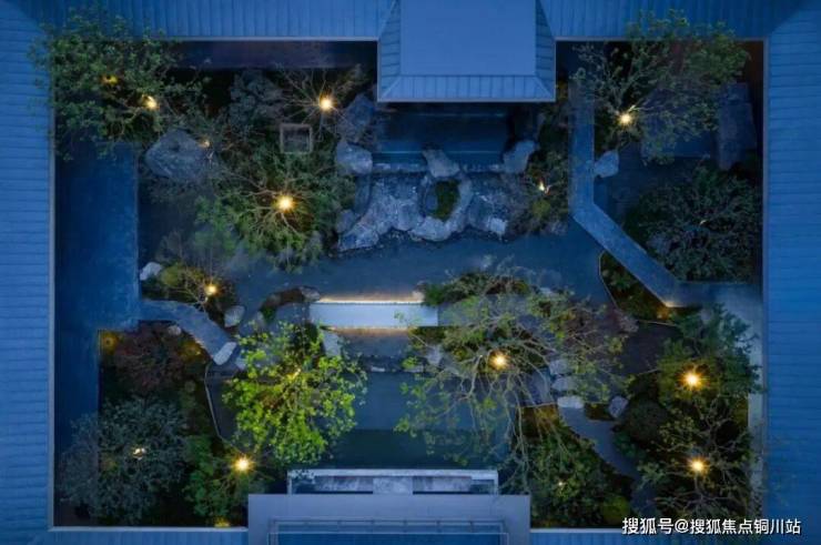 经由旋转式楼梯,直达下沉式中央庭院,又是一幅《高山流水》,景观地势高差达到5米,野奢感十足。
