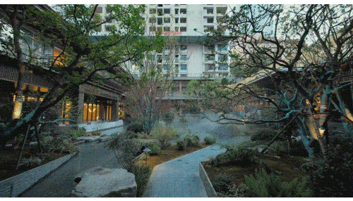 承宁府深谙其道,严谨溯源古画,借鉴古韵建筑构件,打磨仿古细节,提取古画色彩,甄选植物树种,精心布景山水,为汉口内环献礼第一个新中式大作。