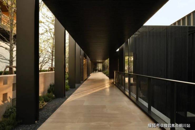 以酒店美学铸就隐奢门庭归家礼序;酒店式落客庭院呈现高雅的秩序之美,给人以高端、舒适、仪式的抵达体验;在环岛落客区,特色主景树作为视觉center,成为晋墅迎宾的标志性景观;