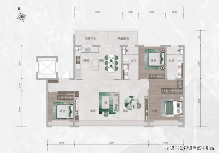 约3.9米面宽的主卧套房功能完善,细节设计彰显人性化考量。