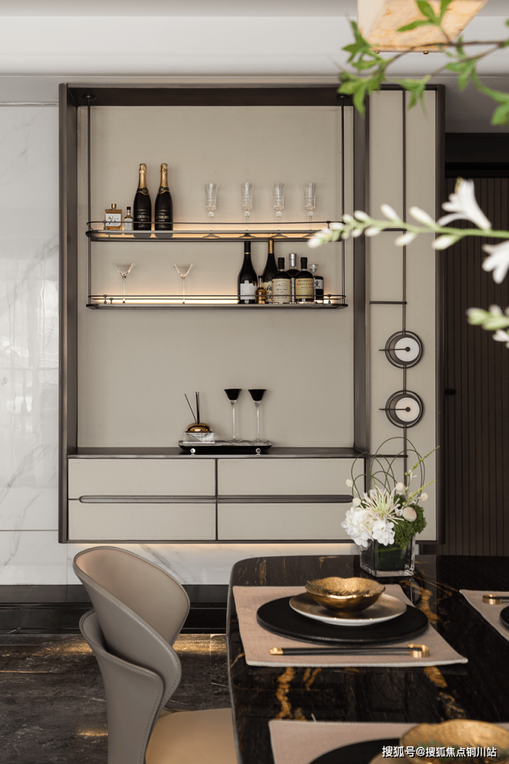 餐厅连续阳台,将阳台水吧视作餐厅补充,弱化边界感。