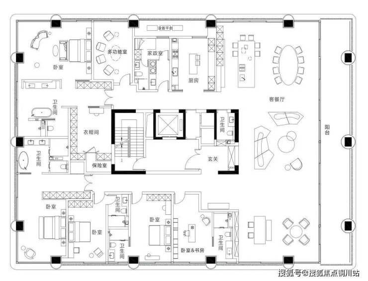 抛弃了传统的承重墙结构,仅靠14根承重立柱,保证了整体通透性,真正意义上的大平台产品。