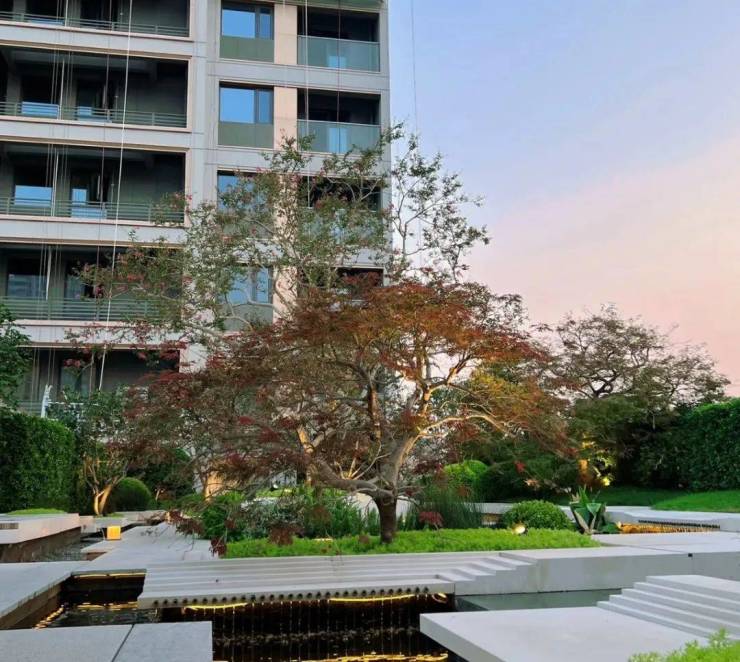 在这一小方寸花园,万科使用了羽毛枫、鸡爪槭等名贵树种,与精致的空中花园相得益彰。