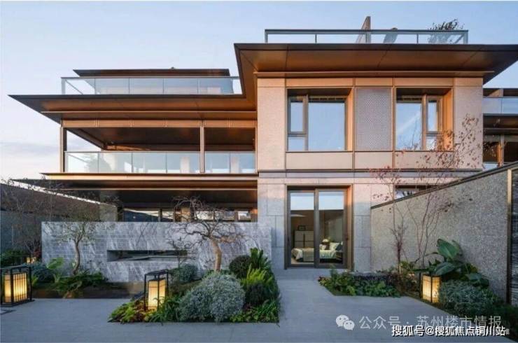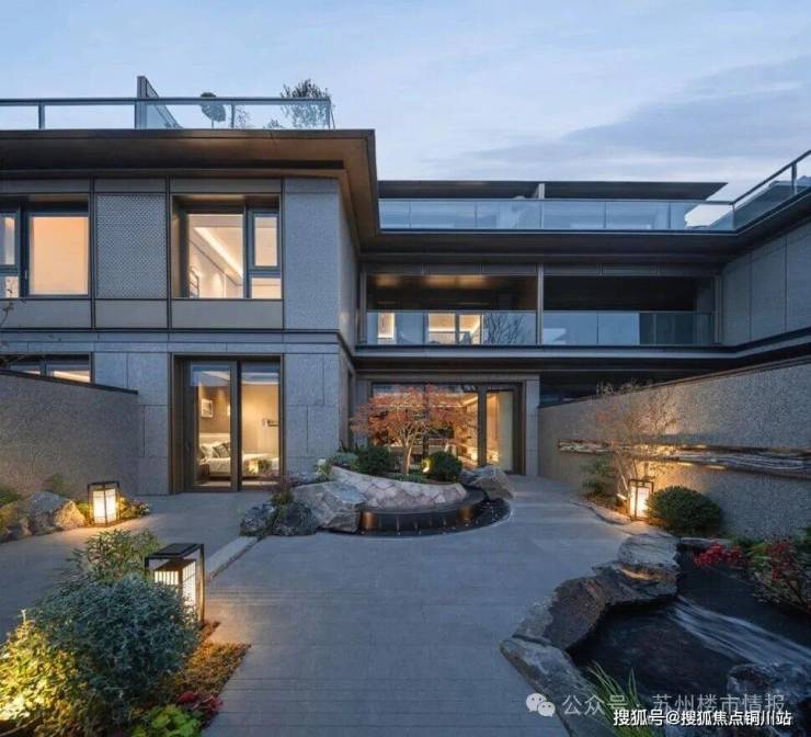 再看联排别墅,更是做到了“板块唯一”的顶配!天然石材基座+铝板的黄金组合,搭配定制门徽、鎏金屏风等细节,把东方美学和现代奢华拿捏得恰到好处。