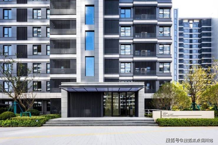 单元入户采用的是干挂珍珠蓝真石材和金属雨棚,高级感十足。
