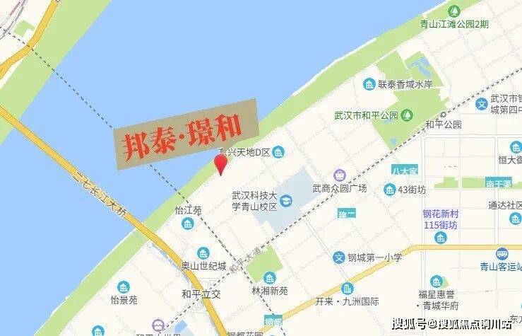 邦泰·璟和坐落于武汉青山区临江大道与三弓路交汇处,是青山滨江板块中兼具景观稀缺性与交通效率的关键地块。项目直面长江,拥有连续、开阔的一线无遮挡江景界面,这使其显著区别于传统城区内部楼盘。同时临江大道的城市主干道属性,也为项目带来了快速通达的交通优势,实现了“观江”与“出勤”的双重价值。