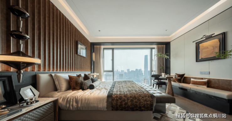 超50㎡酒店式主卧套房,大而不空,宽大床区、超大落地窗观景区、男女双独立衣帽间、豪华卫浴间,无一不在诠释理想生活的模样
