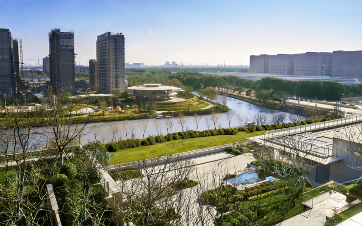 基于这种上海未曾有过的TOD综合体建筑,保利打造了不同于常规“横向生长”的园林,创新性地将公园纵向延伸,以“层层划分”的主题性营造,打造并呈现保利光合TOD垂直生长的立体城市系统。