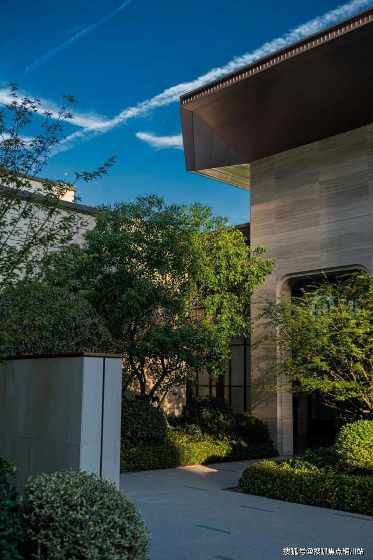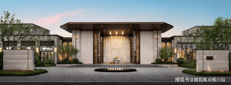 来到【礼遇花园】,率先映入眼帘的是一处景墙,不同景墙的分隔让中轴景观带更有节奏,在约24m长的抬高式中轴水景+两旁的迎宾树阵交相生辉下,满满仪式感。