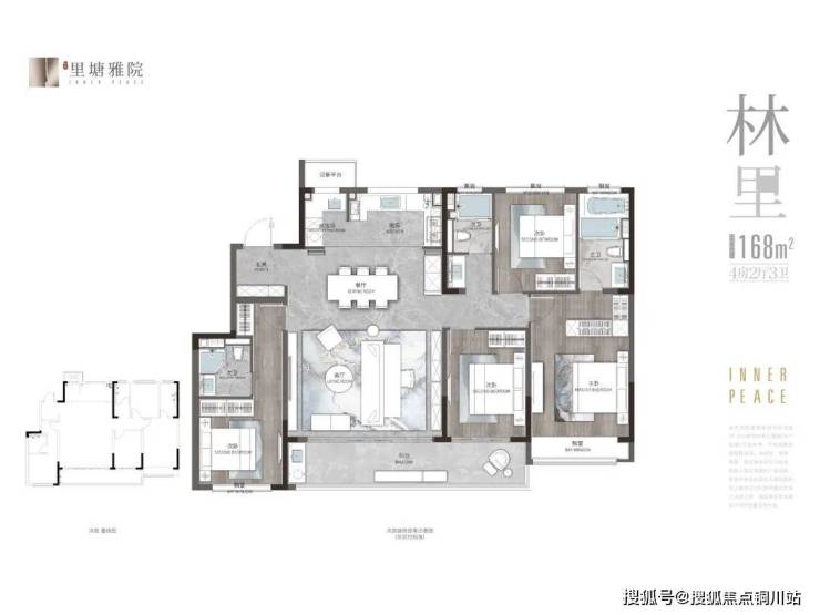 168㎡洋房,4房2厅3卫,四开间朝南,双套房,双联阳台,还有家政间,户型几乎没有什么可挑剔的;