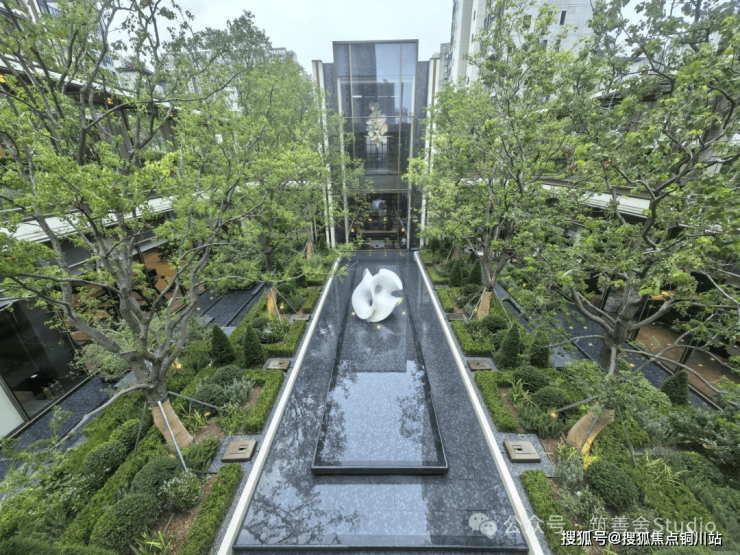 下沉庭院汲取西班牙阿尔罕布拉宫的精髓,阵列跳泉错落有致,乌桕与油橄榄相映成趣。幻影蓝水台与高艺术雕塑重现宫廷水轴的尊贵仪制,呼应庭院的珍贵,为璀璨生活埋下伏笔。三时有花,四季见绿,每一次驻足,皆是一场与自然和艺术的亲密对话。