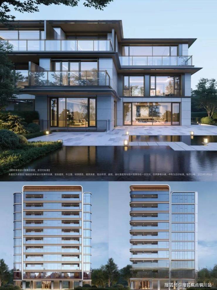 将苏州古典园林的造园智慧与现代设计语言相融合, 再现“枕水而居”的人居形制;中高区远眺即可尽揽鸣凤堤湖岸水景,形成 多层次的立体景观体验。