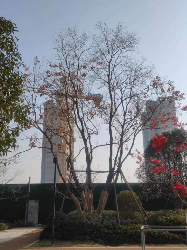我们都知道,乌桕的观赏价值非常高,春夏观景,绿树成荫;秋可观叶,娇艳似火;冬可观形,婀娜多姿。但想要呈现这样的景观效果,就要在运输之前先进行疏枝剪叶,防止移栽后自身营养消耗过多。这也是为什么我们看到现在这棵百年乌桕并不茂盛的原因。