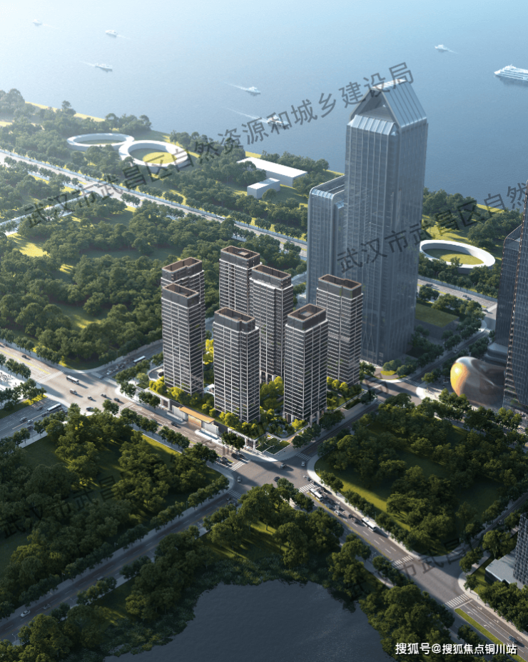根据报规文件,项目规划净用地面积18930㎡,总建筑面积82582㎡,计容建筑面积52300㎡,容积率2.76。这个容积率在武昌滨江还算能打,也符合豪宅定位。