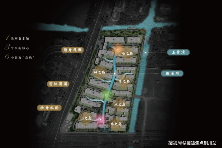 项目坐拥双河环抱、两水交汇的天然岛境,以「玉带湾」水岸绿带串联活水,呼应苏州“水陆并行、河街相邻”的古城格局,重塑当代江南水乡肌理。