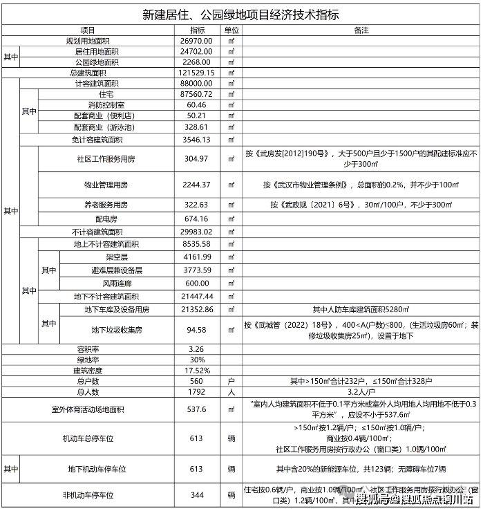 招商长江序的总建筑面积约121529.15㎡,住宅建筑面积约87560.72㎡,容积率约3.26,规划560户,车位613个,车位配比约1:1.09。