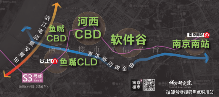 沿秦淮新河黄金发展轴,一条地铁S3号线,将河西鱼嘴CBD与软件谷、南京南站等高能板块紧密串联。