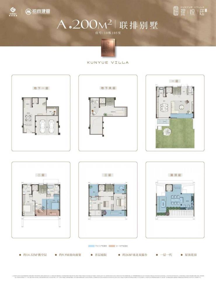 作为昆山首座一墅六园联排,主力户型为约200-233㎡4F联排别墅仅115席,超大可拓展空间,天地尽揽,创新性地打造出“一层庭院花园+二层阳台花园+三层露台花园+四层屋顶花园”的四重垂直花园场景。