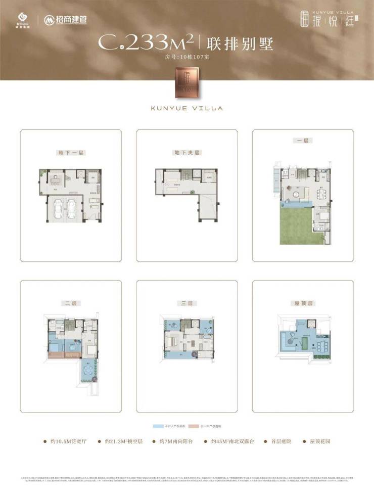 以建筑面积约233㎡边户联排(10栋107)为例,实际使用面积约600㎡以上,5房3厅4卫。南北双院能拓空间、挑空区还能再改套房、地下室都能变两层…… 这波户型神操作,算是直接把昆山改善市场卷到断层。