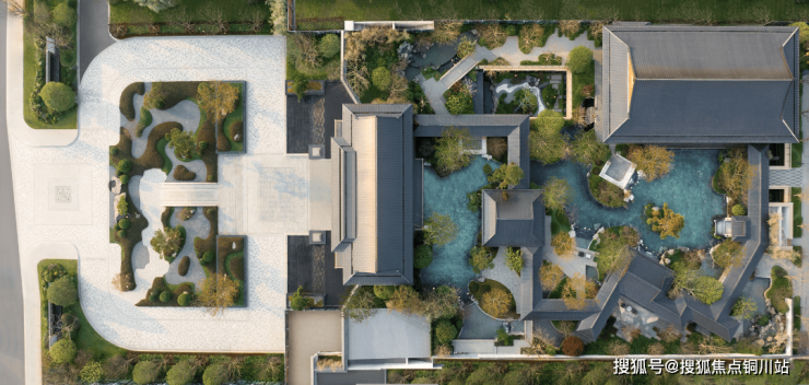 宋式美学设计:项目秉持清润典雅的宋式美学,以中式园林手法营造一园多点、四进院落格局,打造七大奢享场景。从高约 10 米、宽约 26 米的中式威仪府门,到龙鳞纹水景墙、定制古铜金格栅 “华盖” 等,都演绎出宋代宫室殿宇精髓。