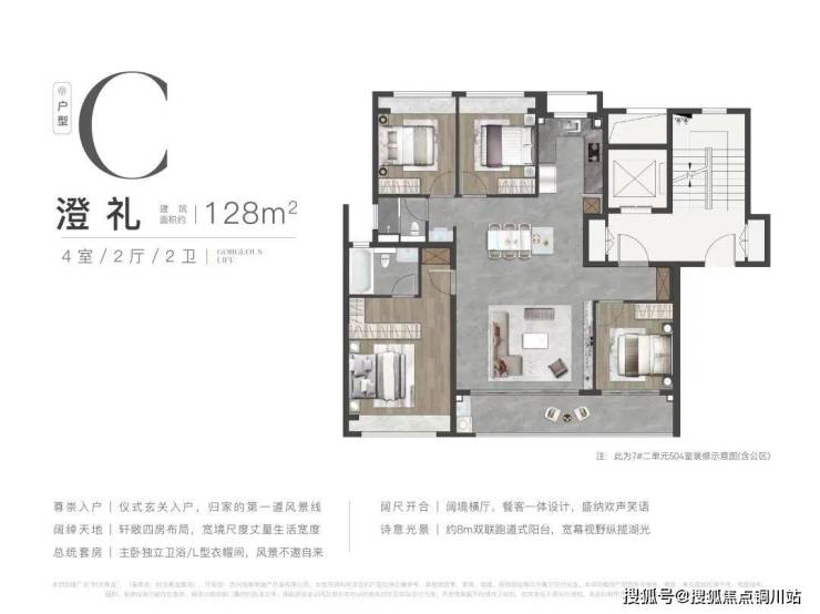 该户型有4个飘窗设计,有一定的赠送空间;