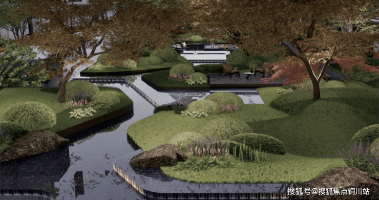 七重景观节点,超长带状花园,约150米景观漫步道 ,百米景观主轴贯穿,四时花园植被体系与艺术感花境营造,约1.5低密容积,共鸣自然生活。