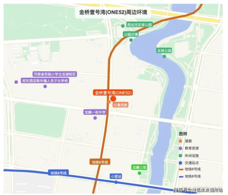 配套方面,项目西侧有郑东西亚斯外籍子女学校和河南省实验小学北龙湖校区,南侧约600 米有地铁6/8号线交汇的小营站,距离金融岛商业中心约1 公里,出行便利性与生活便捷度堪称顶级。