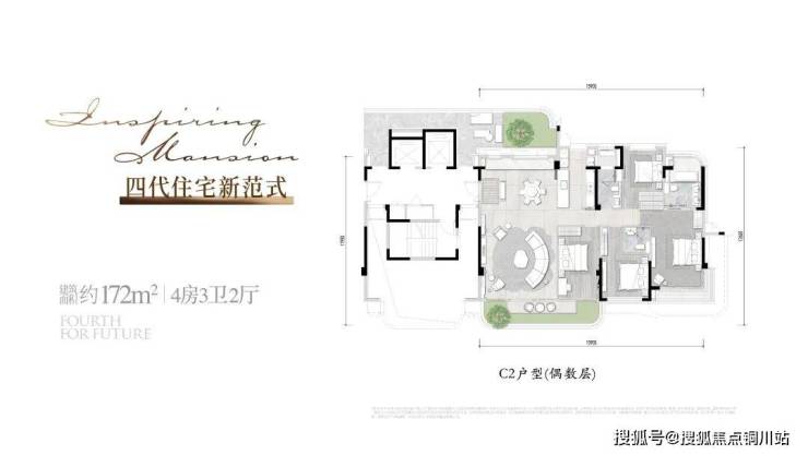 近期,天澜映象建面约172㎡第四代住宅户型图正式曝光!得房率达到113%-116%!