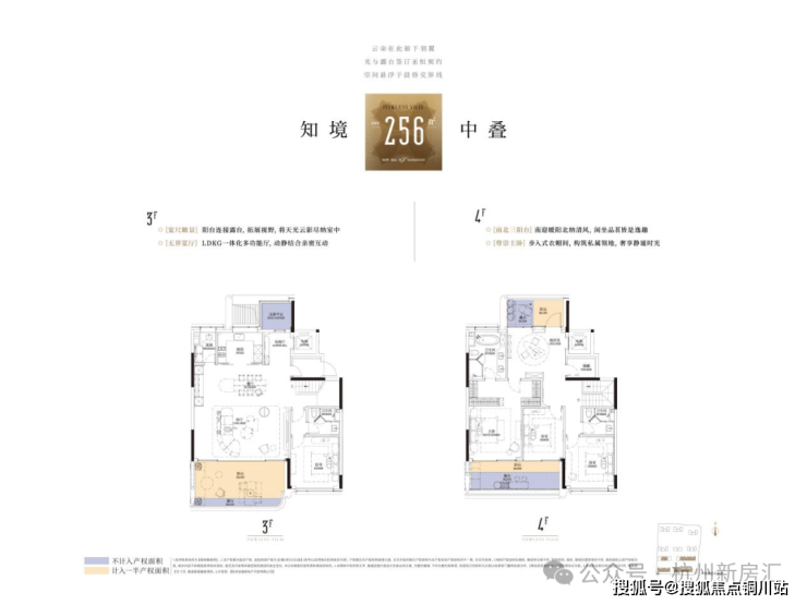 跟以往传统中叠类似于洋房跃层不同的是,潮语臻境府中叠做了类四代宅的处理。比如层高达到约3.4米,阳台延伸成一个大进深、建面约24㎡的露台,更像是一个空中庭院。而且两层空间都有南北双阳台(露台)。