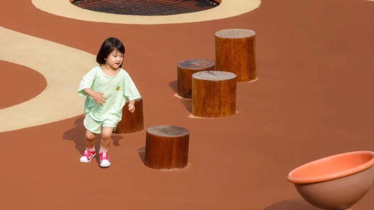 坐在大台阶上,可以观察到云环中心为小朋友们设置的地面拓展探险区,孩子们纵情探索、与大自然亲密接触,家长们可放心在一旁休憩,也可随时加入,共享游玩乐趣。