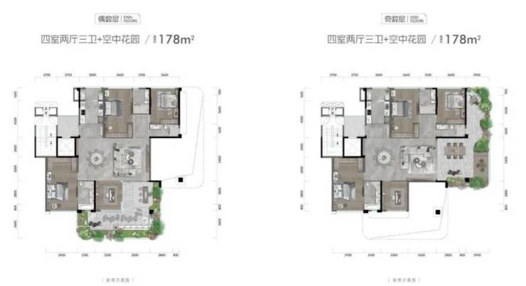 ▲ 建面约178㎡ 4室2厅3卫+空中花园