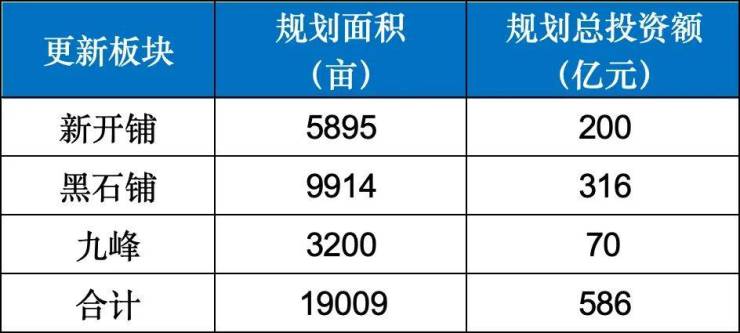 除了新开铺,还有黑石铺、九峰等城市更新,是省和区未来5年重点推进的地方,总投资金额近590亿!