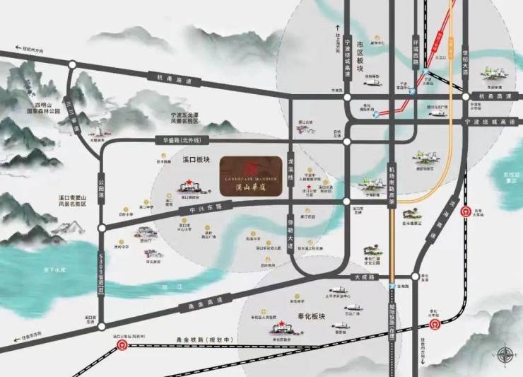 交通配套:紧邻中兴东路、龙溪线,15 分钟可达奉化主城,40 分钟至鄞州 / 东部新城;规划中的甬金高铁溪口站距项目仅 10 分钟车程,还有规划中的 K1 线机场专线、溪口到栎社机场的 9 号线。