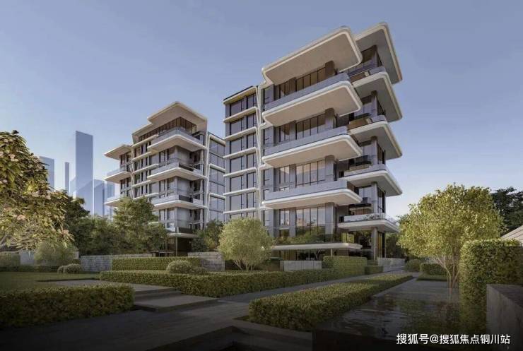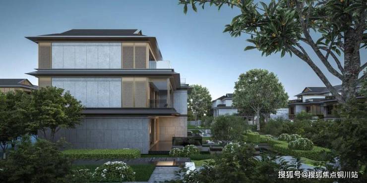 3层设计,层高3.1-3.5米,户户配备独立庭院,深灰铝板+金色金属板立面,融合宋式建筑风骨与现代质感。