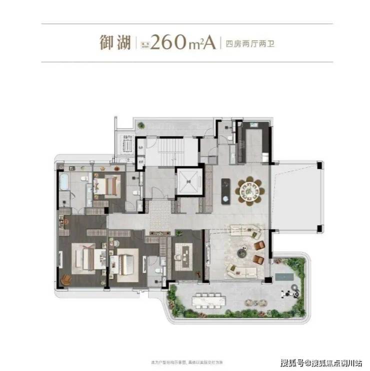 创新错层露台,精装品质升级:预计打造约185-260㎡大平层,配备智能家居系统,主打“墅级空间感”。