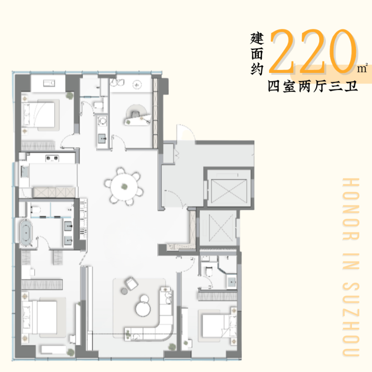 作为龙湖首次加推的面积段,220户型仅有42个稀缺席位,揭示苏城奢居新写法。