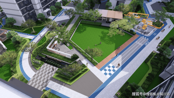 项目秉持“全龄互动·和谐共生”理念,匠心打造覆盖老年颐养、成人健身、家长看护及儿童游乐的复合型活动空间。约1.6公里宝石蓝健康跑道串联全龄功能区,莫兰迪灰与玛格丽特黄的现代美学,结合自然种植设计,构成层次丰富的沉浸式景观。