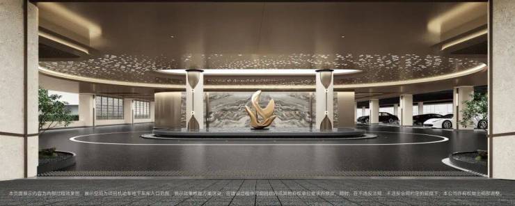 中央车站也是市面上没有的,你敢想象地下停车场会有这样的场景?连高端的酒店都没有,观宸有!而且在空间和用料上面都是最好的,顶部是星空顶,地面是水磨石,墙面部分运用了石材,豪是真的豪!