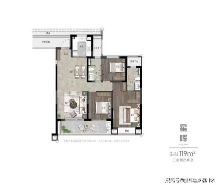 客餐厅及阳台同时做到超大开间,在三房产品中是鲜有出现的设计,将舒适二字发挥到极致。