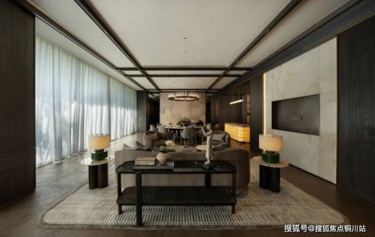 方厅LDKG:整体户型设计中,约60%是社交空间,40%是居住空间,保证业主在家中也能平衡生活与事业,是为徐州CBD大老板定制的大平层。