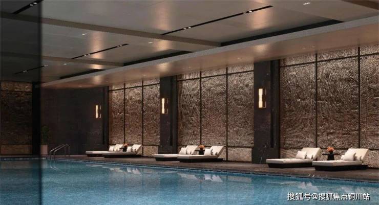 位于-1F的会所以大面积的玻璃幕墙引入充足的自然光线,主要以休闲会所、健身区域和泳池区域三大功能块,围绕下沉式中庭铺展开。