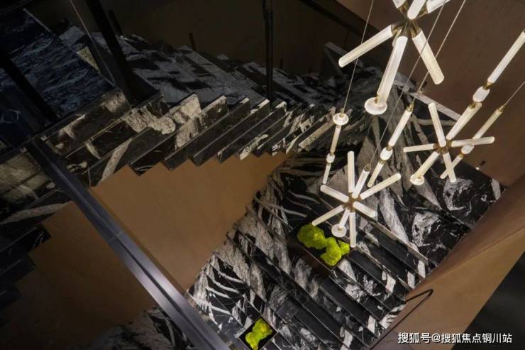 室内从一个约350平米的方形空间开始构造。阵列的石材造型加之多维穿插的矩形体块,形成了韵律丰富、光影交错的场景。透光石材构成了通往会所空间的独特引导标识。这份独属金陵城的儒雅与贵气,迎接着每一个到访的客户,提供了一个充满仪式感的开场白。