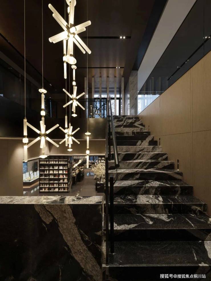 沿黑白纹理的石材梯步拾阶而下,如同踏在奔流的长江之上行走。群星环绕在身边闪烁。